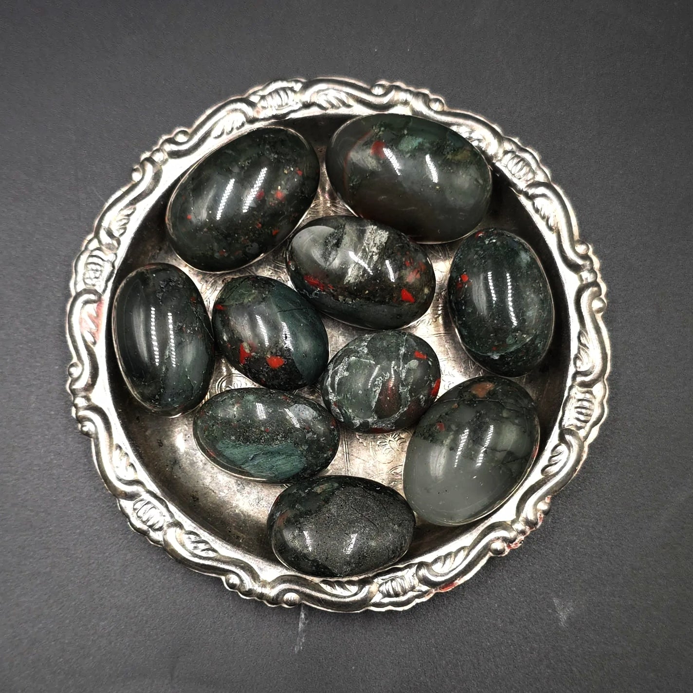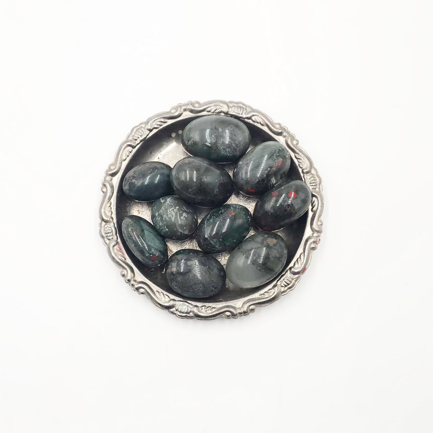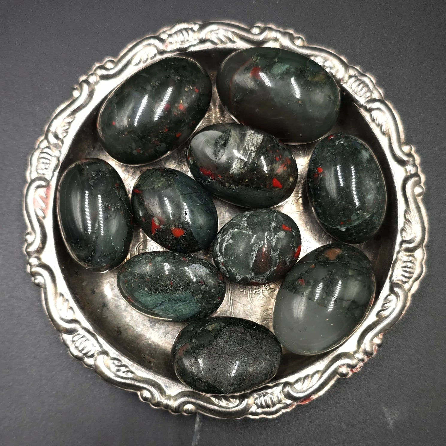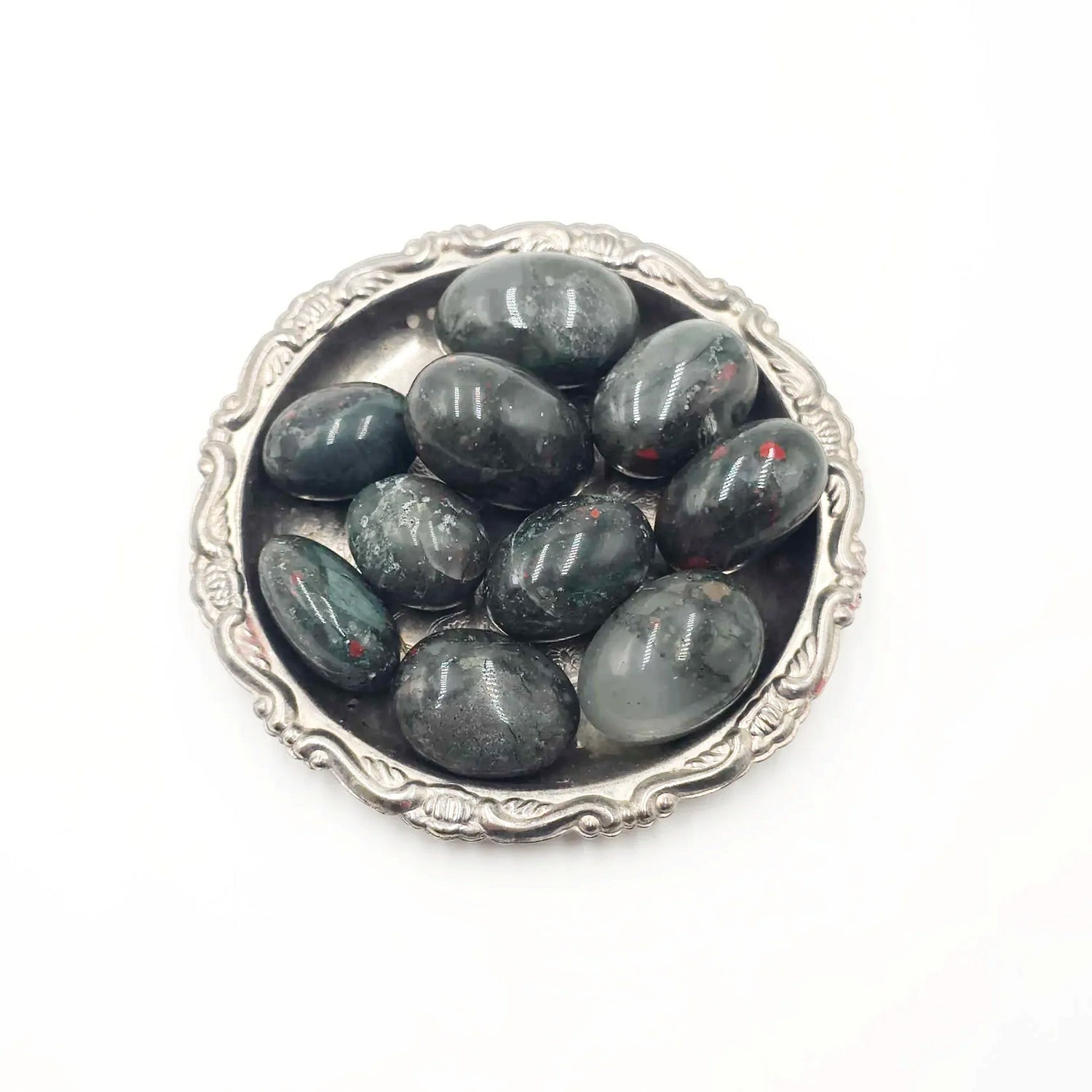 - Not only are our African Bloodstone Tumbled Stones powerful healing tools, but they also make a beautiful addition to any crystal collection. Their deep green color and unique patterns make them stand out from other stones, adding a touch of natural beauty to your space. Display them on a shelf, in a bowl, or on your desk to bring their healing energy into your environment.