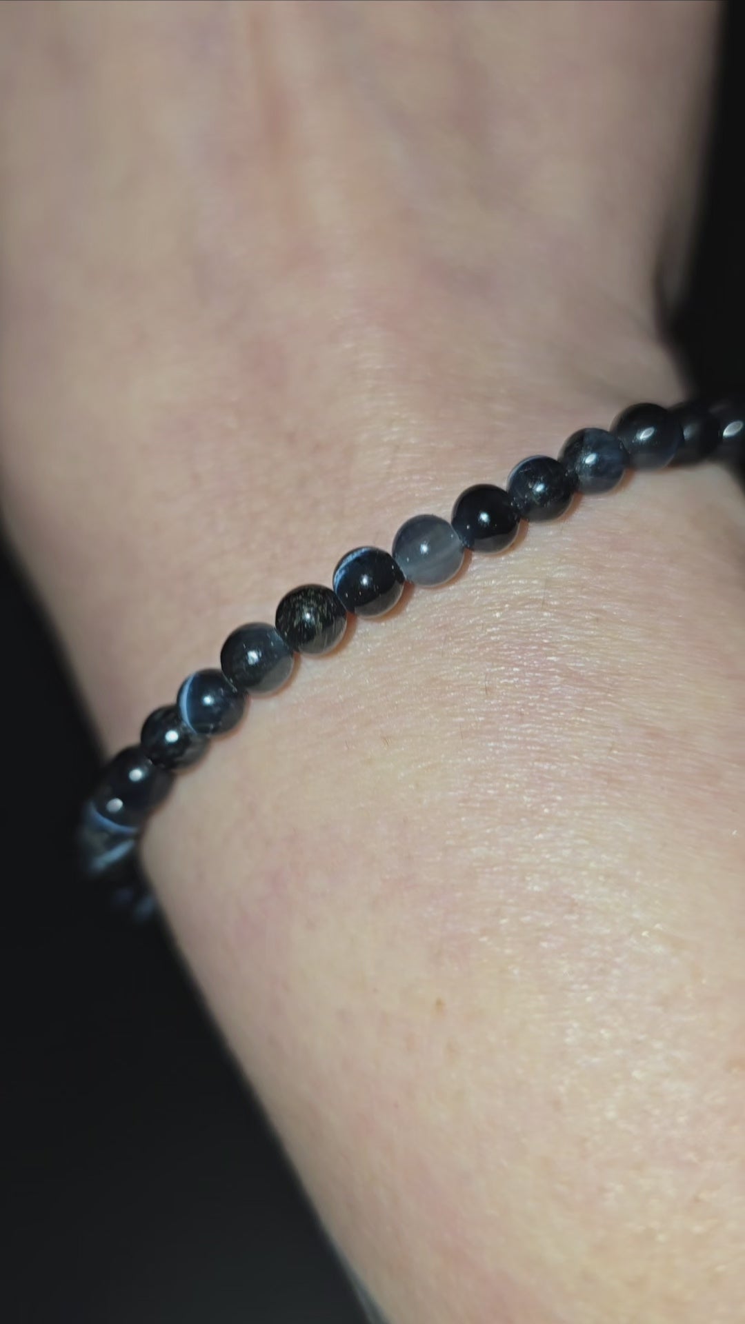 Enhance your look with the calming elegance of our Blue Tiger Eye Bracelet. Featuring 4mm beads and a comfortable 7.5” length, this bracelet is a perfect blend of style and energy. The deep blue hues shimmer with iridescent bands, creating a mesmerizing accessory that complements any outfit.