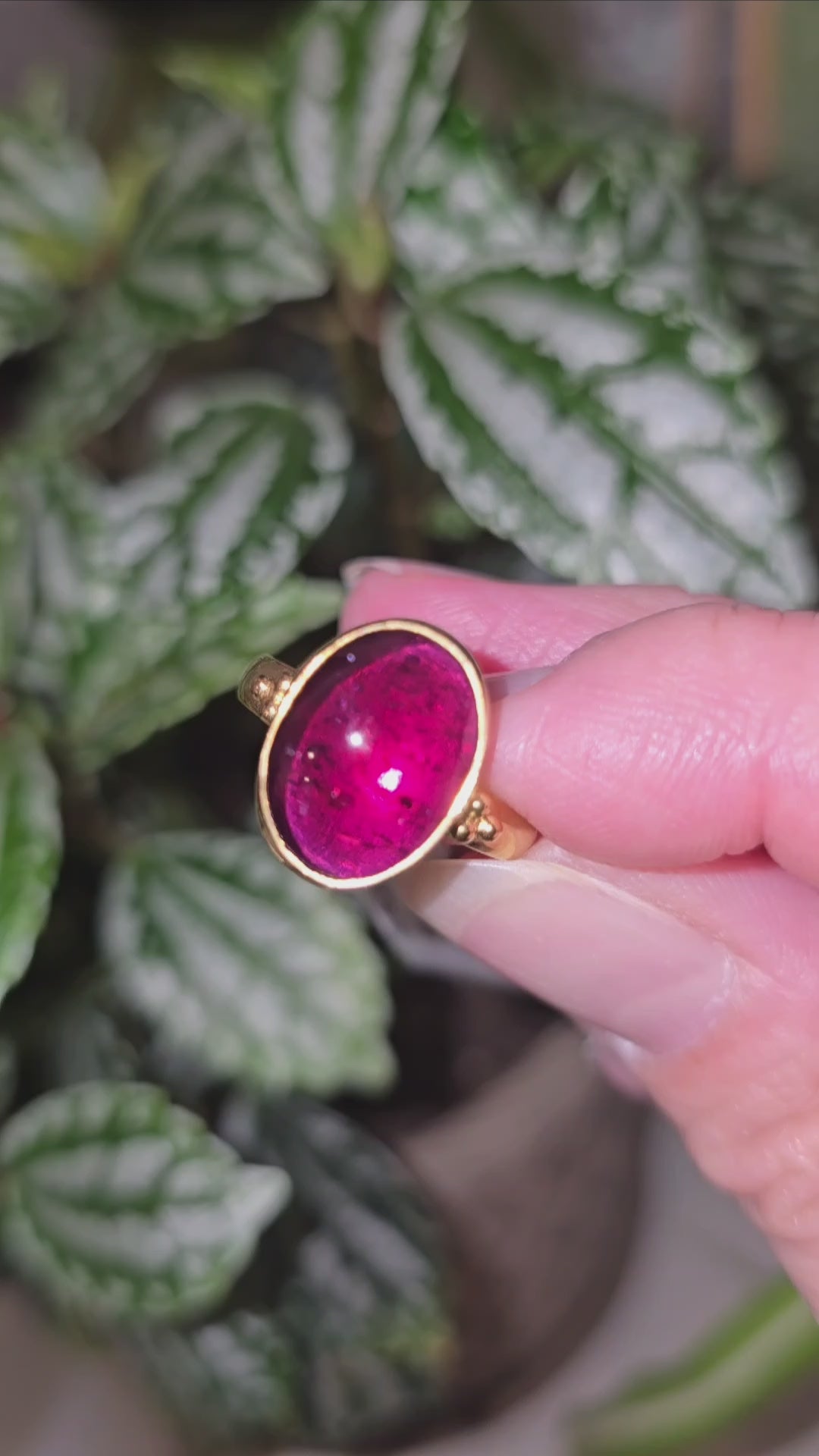 Bold, grounding, and full of fire—this garnet dome solitaire ring is a striking piece designed to capture attention and carry intention. The deep red garnet, set in gold vermeil over sterling silver, radiates strength and vitality while the dome cut adds a touch of modern elegance to a timeless gemstone.