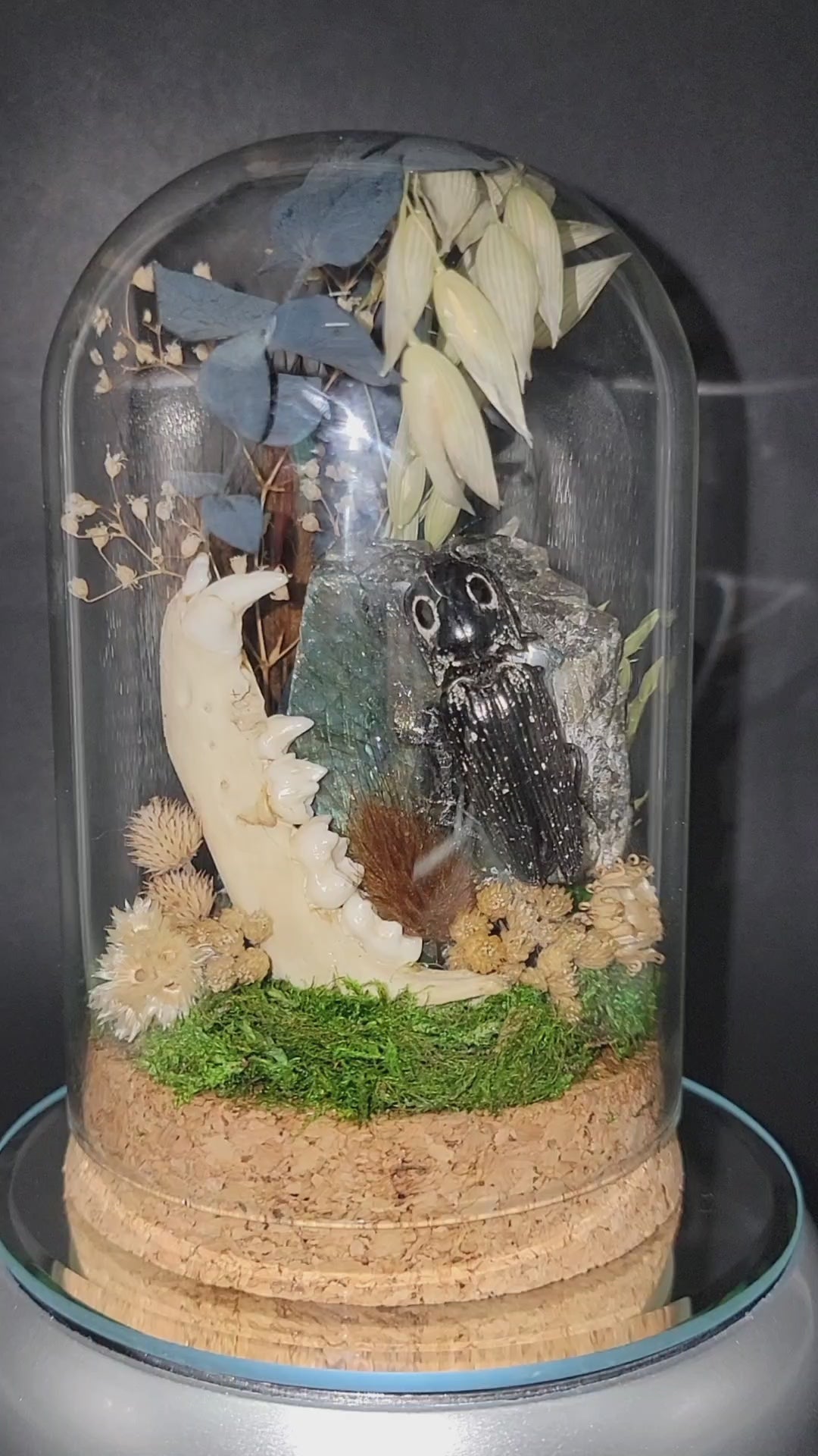 Labradorite, Jackknife Beetle, and Raccoon Mandible Fairy Garden Curio Capsule Oddities Jar