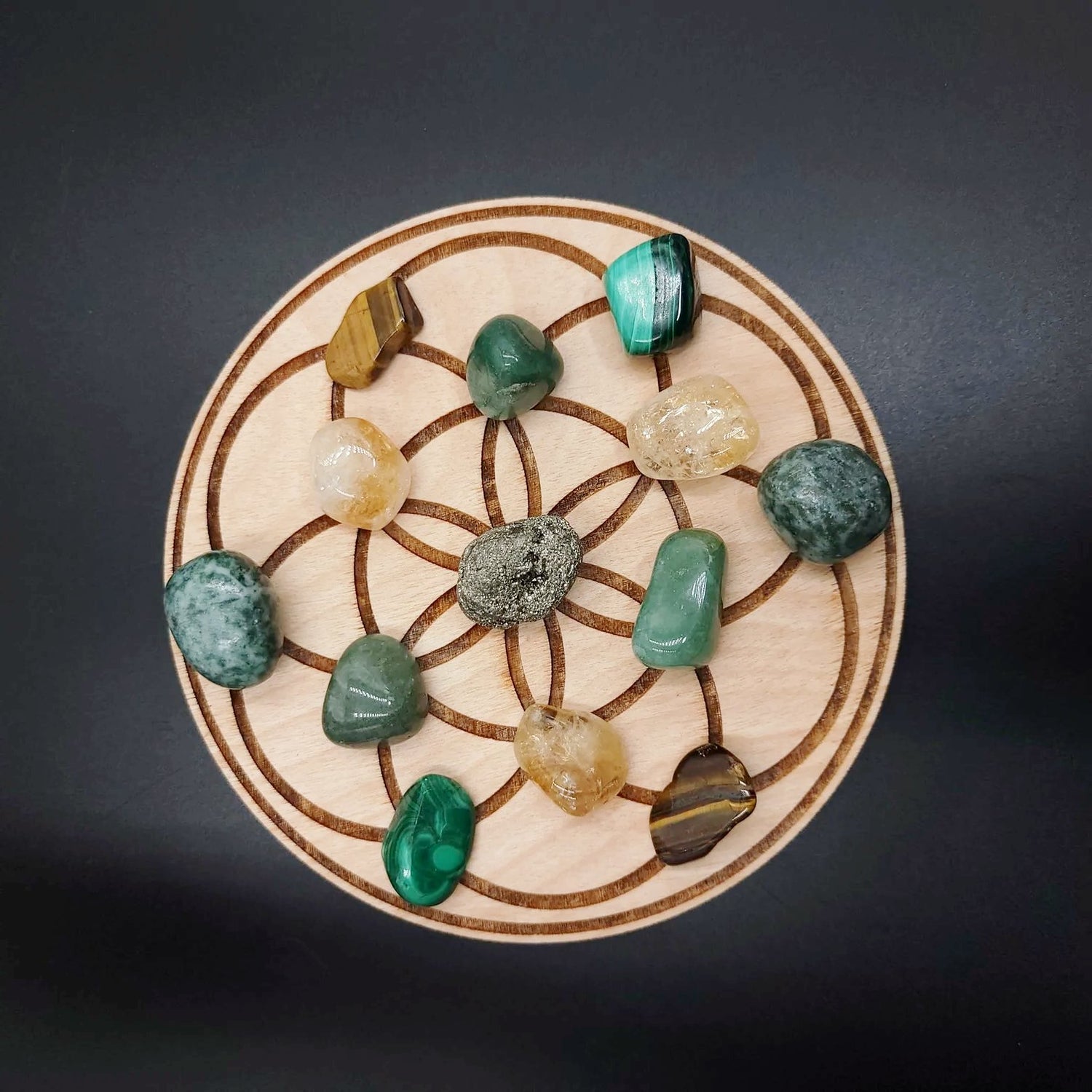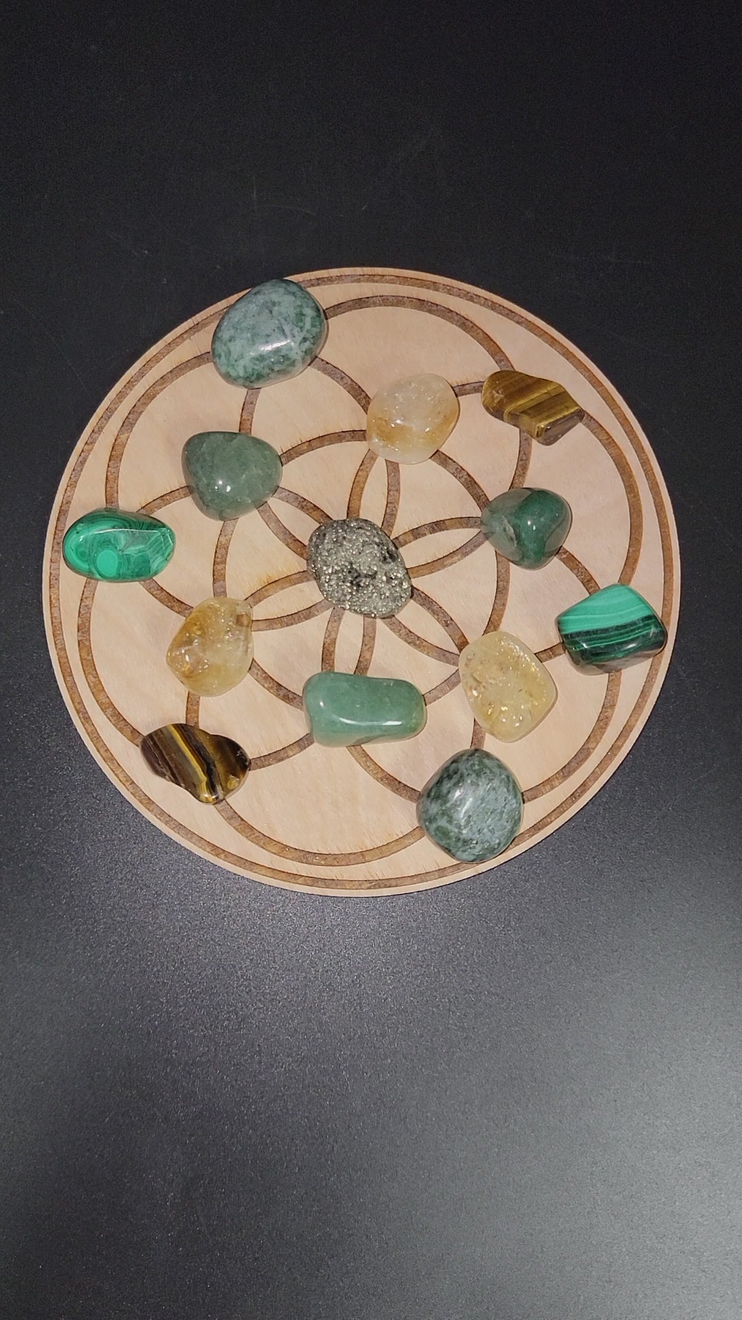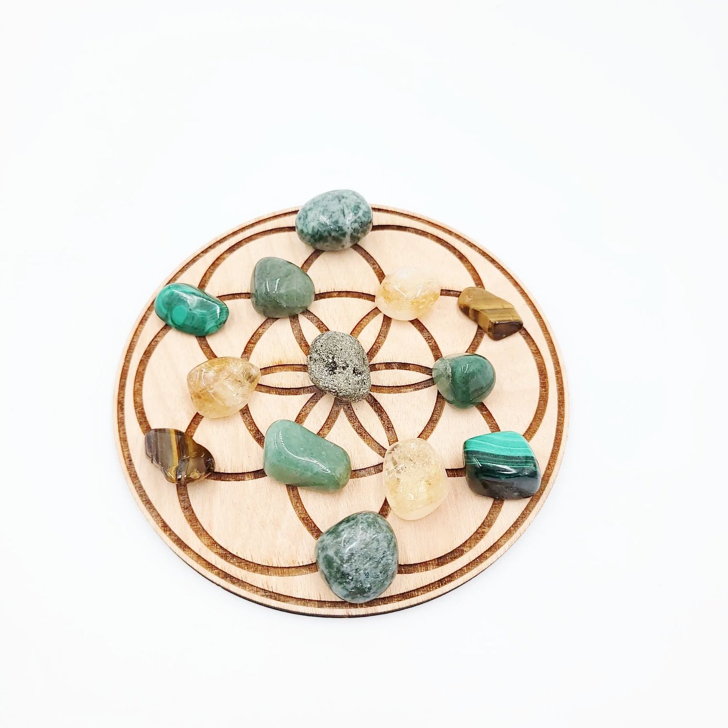 This set is carefully curated for money, wealth and luck. The mixture of Pyrite(1), Citrine(3), Green Aventurine(3), Tiger Eye(2), Jade(2) and Malachite(2) might be the perfect mix of crystals for money and wealth attraction. $65 value.